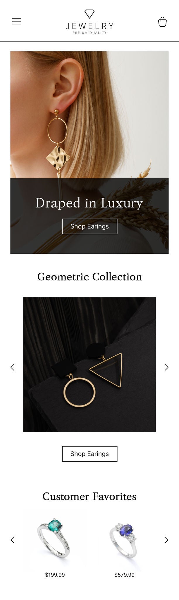 Standardni PLP (lijevo) ne sadrži luksuzne pozive, dok varijacija (desno) ističe luksuzne linije nakita na vrhu PLP-a. Varijacija je prikazana dvjema ciljnim grupama: poznatim posjetiteljima s historijom visoke potrošnje i anonimnim posjetiteljima koji prvi put posjećuju stranicu, a koje su Mastercardovi prediktivni modeli identificirali kao luksuzne potrošače. Napomena: slike ovdje su makete koje se koriste samo u ilustrativne svrhe.