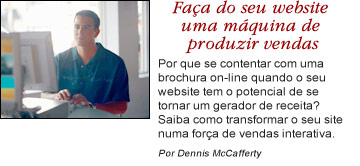Você já tem o seu website em funcionamento há anos. Você clica nele e fica encantado com a parte gráfica e riqueza de estoque. Há até streaming de áudio e/ou vídeo dos seus produtos que são apresentados num canal de compras pela TV. Os clientes, porém, não vêm para o seu site para comprar coisas. Depois de visitar o site, eles não têm nem idéia do que a sua empresa faz. Fundamentalmente, é isso que o seu website deveria fazer solidificar a marca e aumentar as vendas.