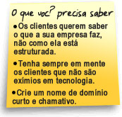 Os clientes não vêm ao seu site para entender a sua estrutura corporativa, diz Sametz. Na verdade, a maioria deles não liga a mínima. Então, não posicione esse tipo de conteúdo como peça central porque tal prática só atrapalha as vendas. Pense em navegação, diz Sametz, ao programar várias excursões pelo site que direcionem diferentes tipos de clientes com maior rapidez ao que eles querem.