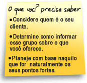 De acordo com Sandra Beckwith, consultora de pequenas empresas e autora de Streetwise Complete Publicity Plans: How to Create Publicity that Will Spark Media Exposure and Excitement, um plano de marketing bem-sucedido começa por identificar o seu mercado-alvo. Se for o proprietário de uma loja de vestidos de noivas, por exemplo, você deveria perguntar-se: "Onde estão as noivas? Quem são elas?"