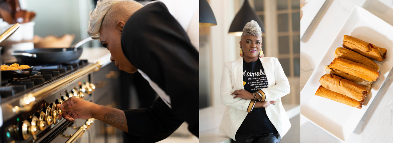 Quando a chef particular LaToya Larkin disse ao filho que ia fazer tamales com a couve que sobrou do brunch do Dia das Mães, ele pareceu cético.