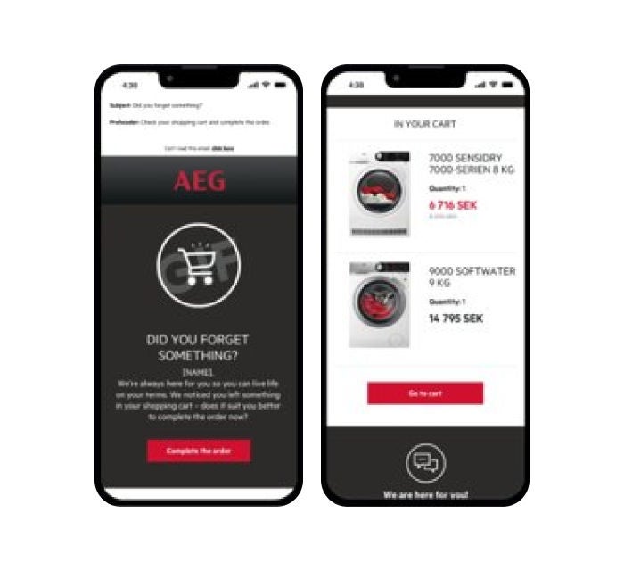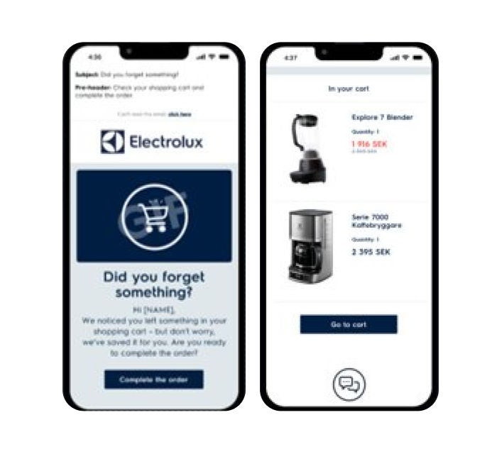 Además del sofisticado programa de localización de Electrolux, el equipo continúa ampliando los límites de la personalización al introducir nuevos canales. Recientemente, Electrolux aprovechó los correos electrónicos activados para volver a involucrar a los visitantes que habían abandonado su carrito, escalando esto fácilmente entre marcas, regiones e idiomas.
