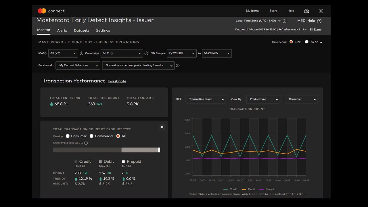 MEDI enables Mastercard customers to detect problems as they occur thanks to near real-time alerts and data visualization. Customers can track their aggregated performance results and performance over time, reducing ambiguity and enabling faster coordination with relevant stakeholders.