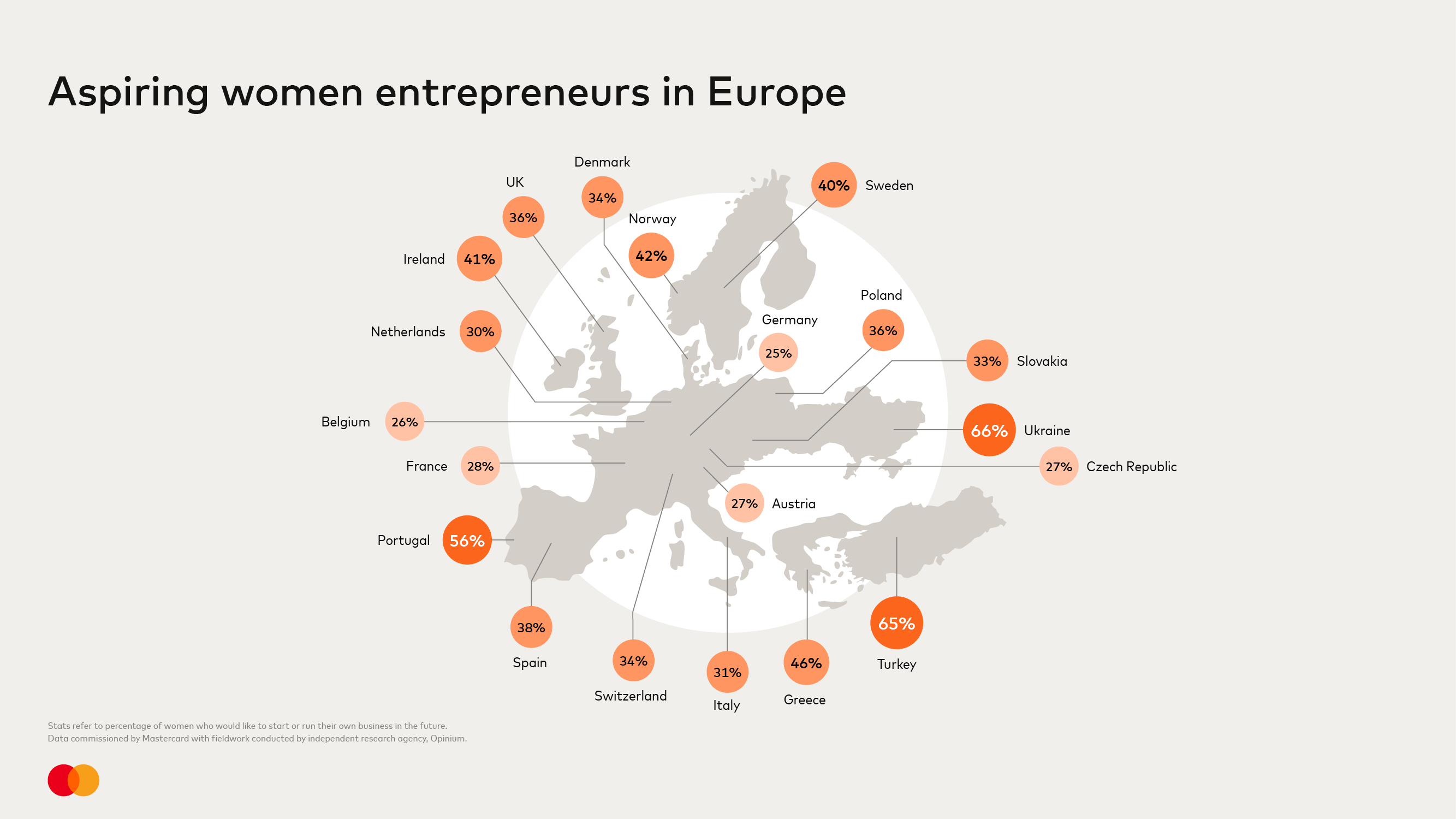 Beatrice Cornacchia, Executive Vice President of Marketing and Communications for Asia Pacific, Middle East & Africa, Europe at Mastercard, said: “This research highlights the remarkable entrepreneurial spirit among women across Europe, particularly within younger generations.