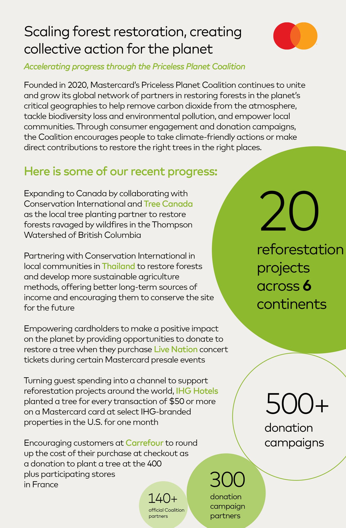 ჩვენ ასევე შეგვიძლია გავატაროთ ბუნებაზე დაფუძნებული კლიმატის გადაწყვეტ ხეები ხელს უწყობენ ატმოსფეროდან CO2-ის მოცილებას და მხარს უჭერენ ბიომრავალფეროვნებას, ამიტომ ლანდშაფტების აღდგენაზე ფასდაუდებელი პ ლანეტის კოალ იციის საშუალებით, Mastercard, Conservation International, მსოფლიო რესურსების ინსტი ტუტი და ჩვენი ადგილობრივი პარტნიორები მძიმე მუშაობენ 100 მილიონი ხის აღდგენ