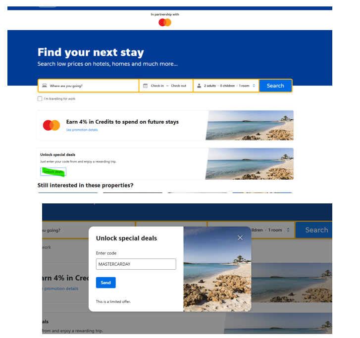 - בנוסף, מובהר כי ההטבה זמינה להזמנות מישראל בלבד ותקפה לעסקאות שבוצעו בכרטיסי מאסטרקארד שהונפקו ע"י בנקים ישראליים עם כתובת הממוקמת בישראל.