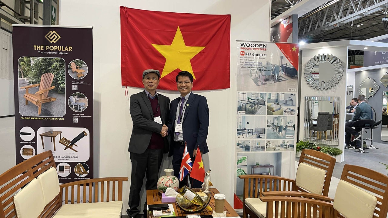 M. Kevin Pham, à droite, avec un représentant commercial du gouvernement vietnamien lors d’un salon du meuble au Royaume-Uni.