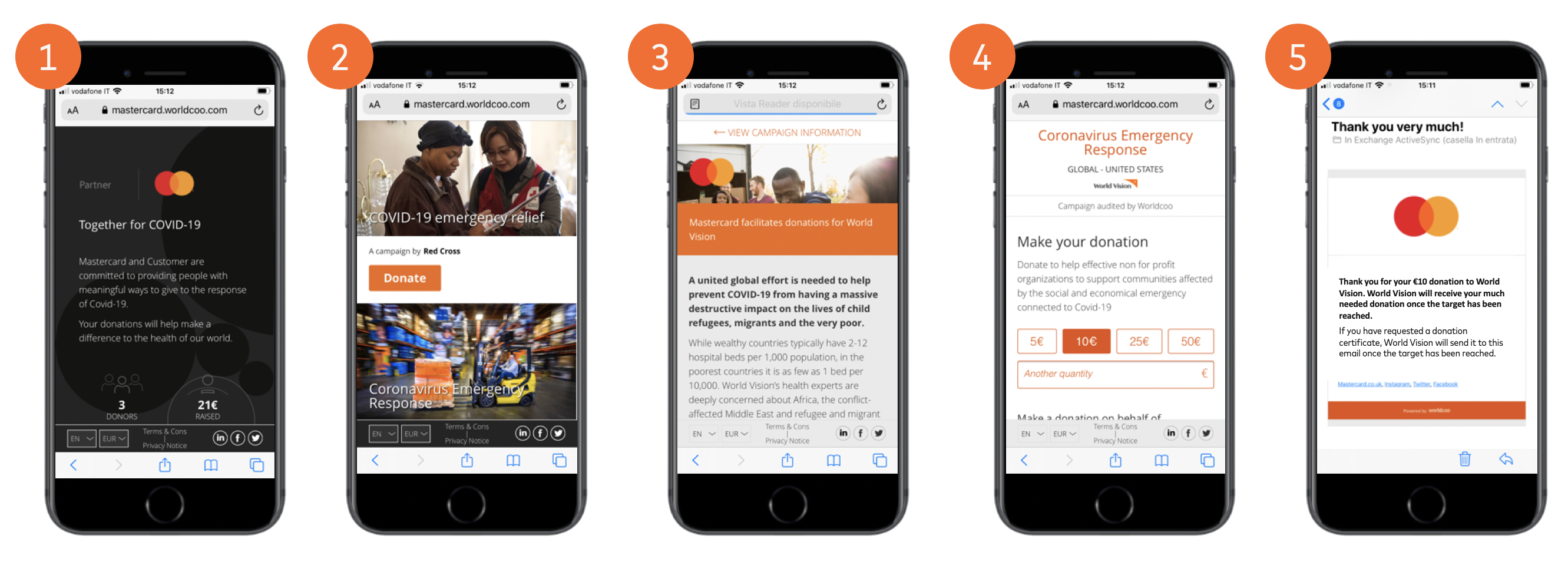 Компания Mastercard зафиксировала 60-процентный рост пожертвований через свои платформы в годовом исчислении, что обусловлено расширением используемых технологий и партнерских отношений, острой необходимостью, вызванной COVID-19, и естественным ростом цифровых пожертвований.
