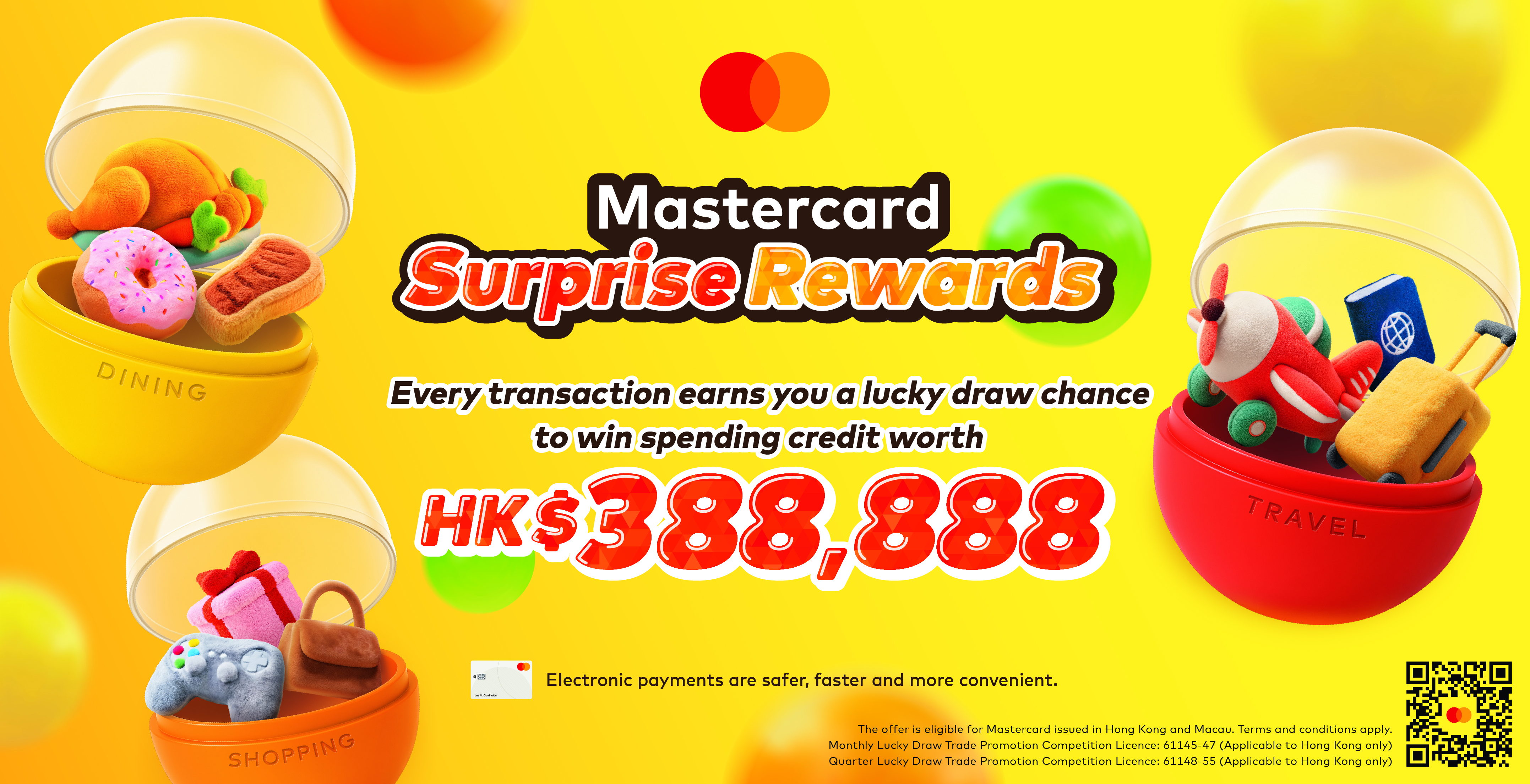 Launched earlier this year, Mastercard’s “Surprise Rewards” Lucky Draw Campaign will award over HK$5 million in spending credit to more than 3,600 cardholders throughout the year. The winners of the first phase's monthly draws are to be announced on March 11, April 10, and May 13, with 300 winners in each draw receiving HK$888 in spending credit. The quarterly winners will also be revealed on May 13.