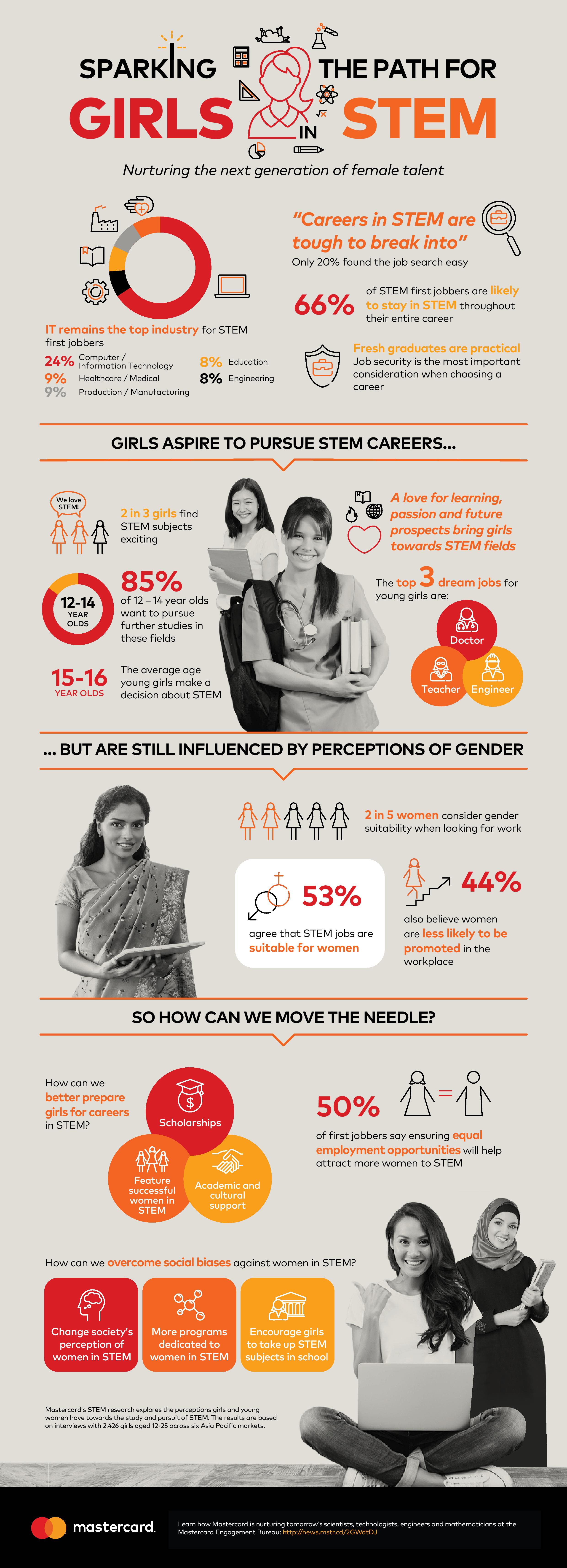 Mastercard’s STEM research is based on interviews that took place in November and December 2017 with 2,426 girls aged 12-25, across six markets in Asia Pacific. According to the study, passion and an abundance of opportunities for learning were key factors that spoke to the staying power of STEM careers and fields of study. In fact, 66 percent of female first-jobbers were likely to remain in STEM throughout their careers.