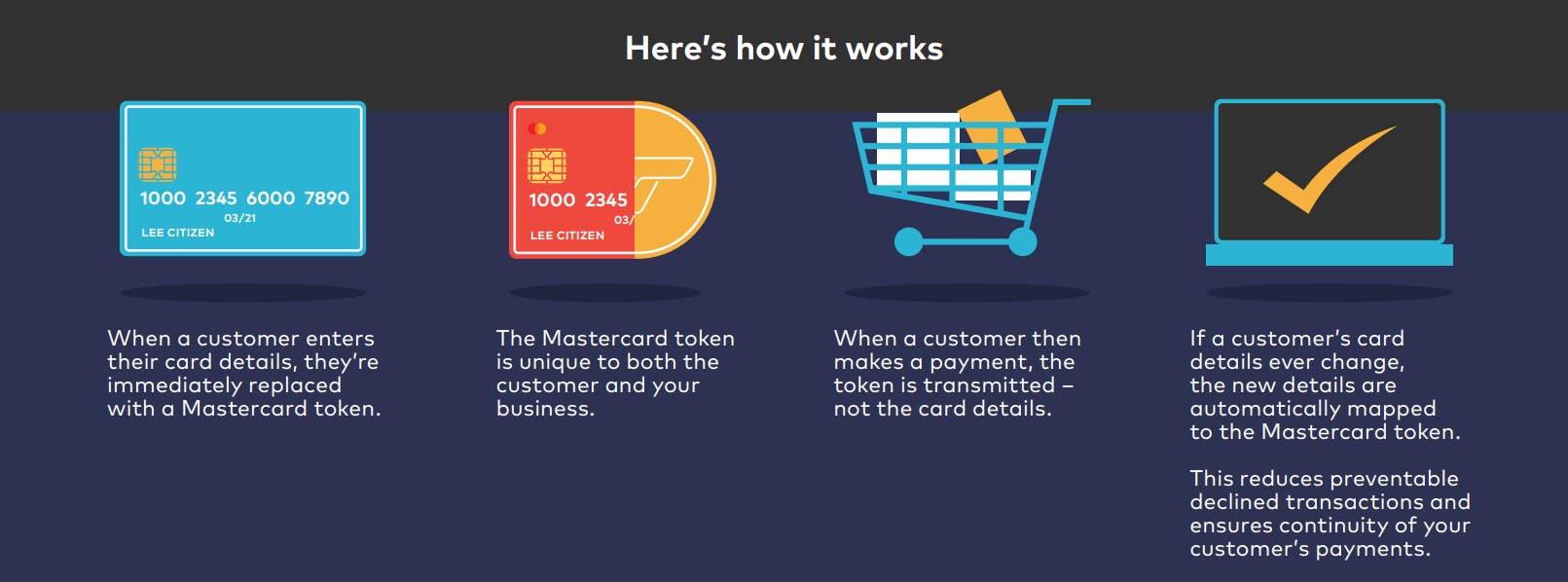 Additionally, the token can be updated by the card issuer, allowing lost, expired or replaced cards to be automatically updated with the merchant. This creates a better customer experience and significantly reduces the number of failed transactions due to expired card details.