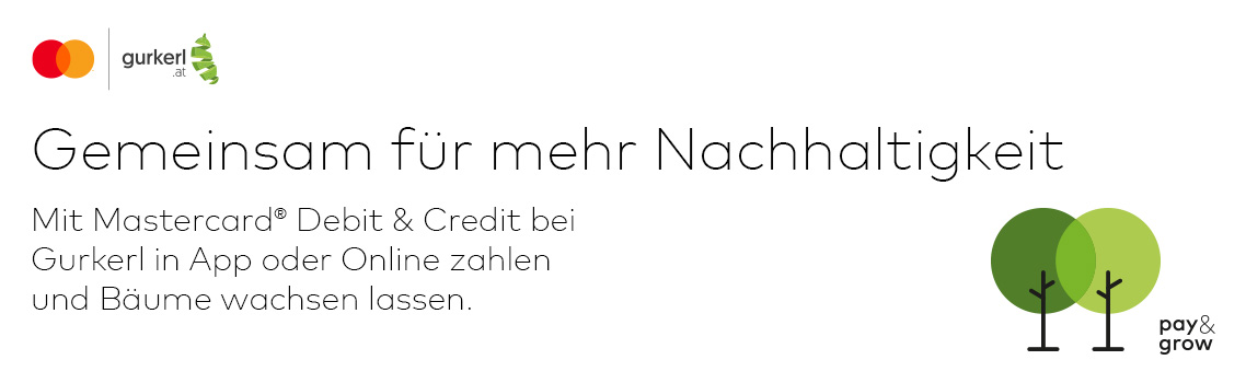 gurkerl.at erweitert seine Maßnahmen zum Klimaschutz und wird Partner der Priceless Planet Coalition von Mastercard. Ziel der Priceless Planet Coalition ist die nachhaltige, weltweite Wiederherstellung von Waldgebieten, da Wiederaufforstung eine wirkungsvolle Möglichkeit ist, aktiv dem Klimawandel entgegenzuwirken. Für Bestellungen, die ab sofort mit der Debit Mastercard oder Mastercard Kreditkarte gezahlt werden, ermöglichen KundI*nnen gemeinsam mit gurkerl.at die Pflanzung von Bäumen und leisten damit einen wichtigen Beitrag zur CO2-Kompensation.