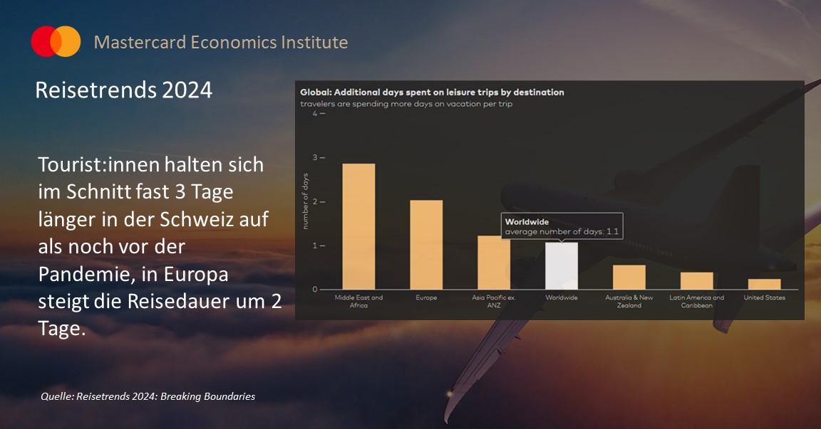Mastercard Economics Institute zeigt die aktuellen Reisetrends 2024: Touristen verweilen länger in der Schweiz