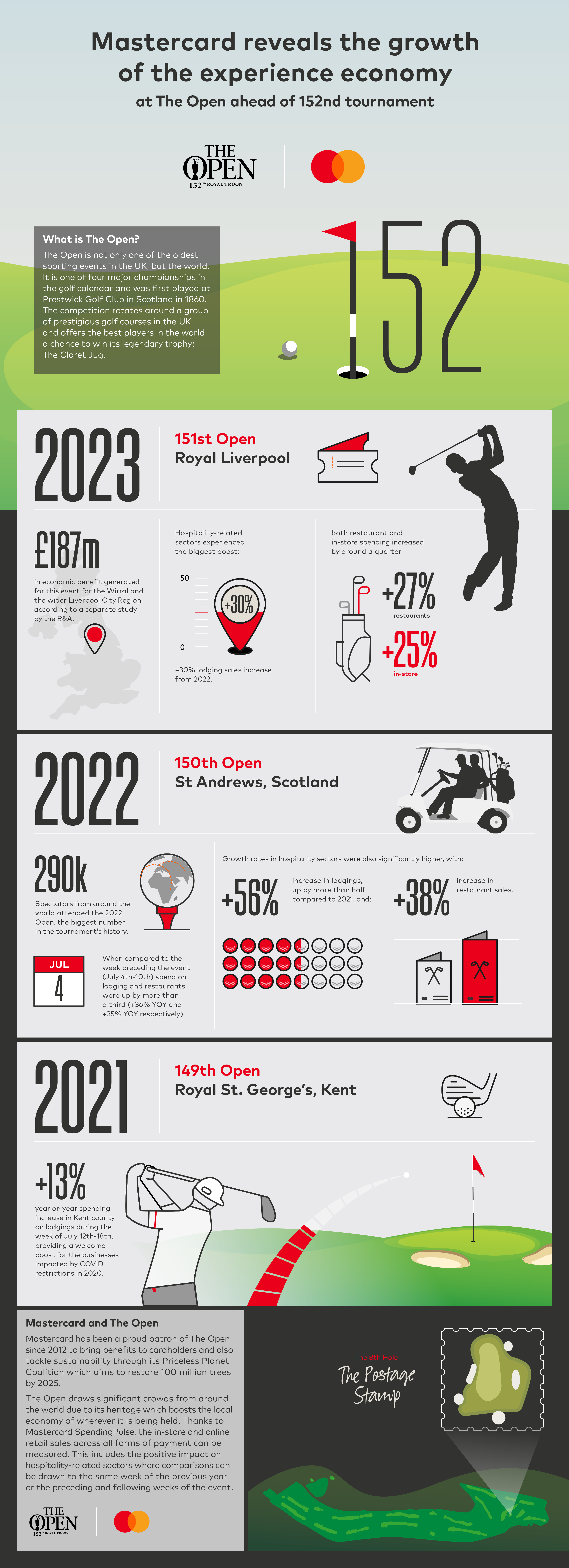 And with 200,000 fans travelling from around the world to witness the historic Open tournament, Mastercard has examined the impact of previous events on local economies..