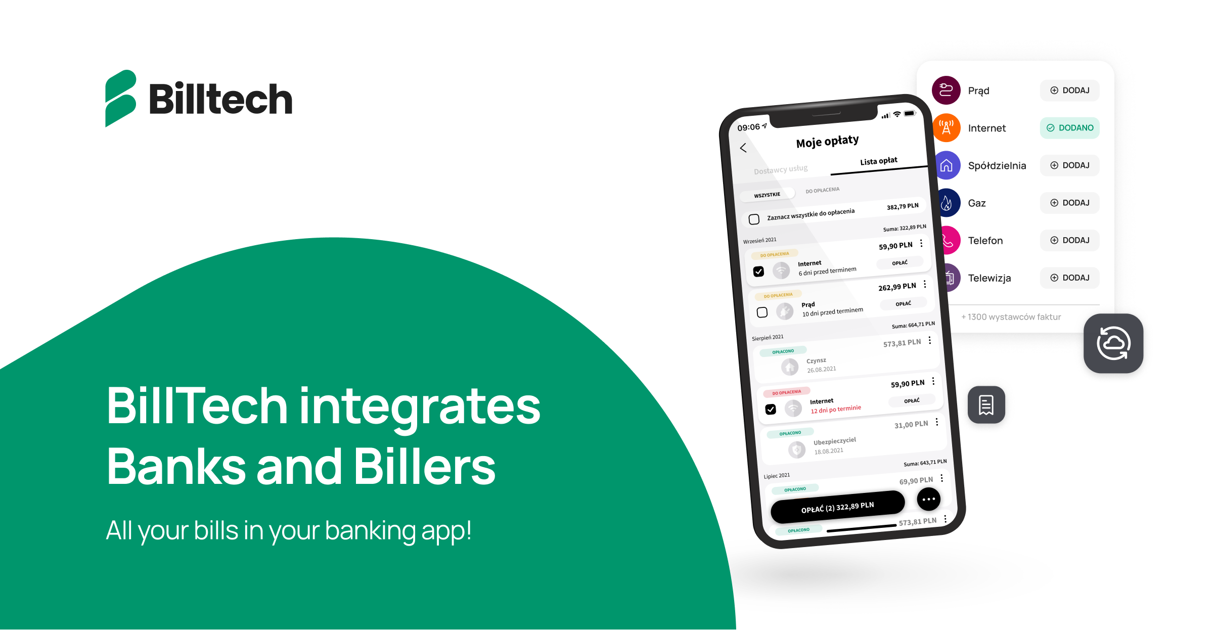 BillTech to nowy standard obsługi płatności cyklicznych, który dostarcza połączenia między systemami billingowymi masowych wystawców faktur oraz bankami. Dzięki temu jest w stanie w czasie rzeczywistym pozyskiwać dane o wystawionych rachunkach oraz aktualizować status ich opłacenia. To z kolei pozwala przedstawiać je użytkownikom w aplikacji banku lub fintechu, z których to aplikacji użytkownicy otrzymują powiadomienia oraz mogą w nich opłacić rachunki. Obecnie w ekosystemie BillTech można pobierać dane od ponad 1300 wystawców faktur (w tym ponad 45, które bezpośrednio zintegrowały produkt BillTech do swoich systemów bilingowych).