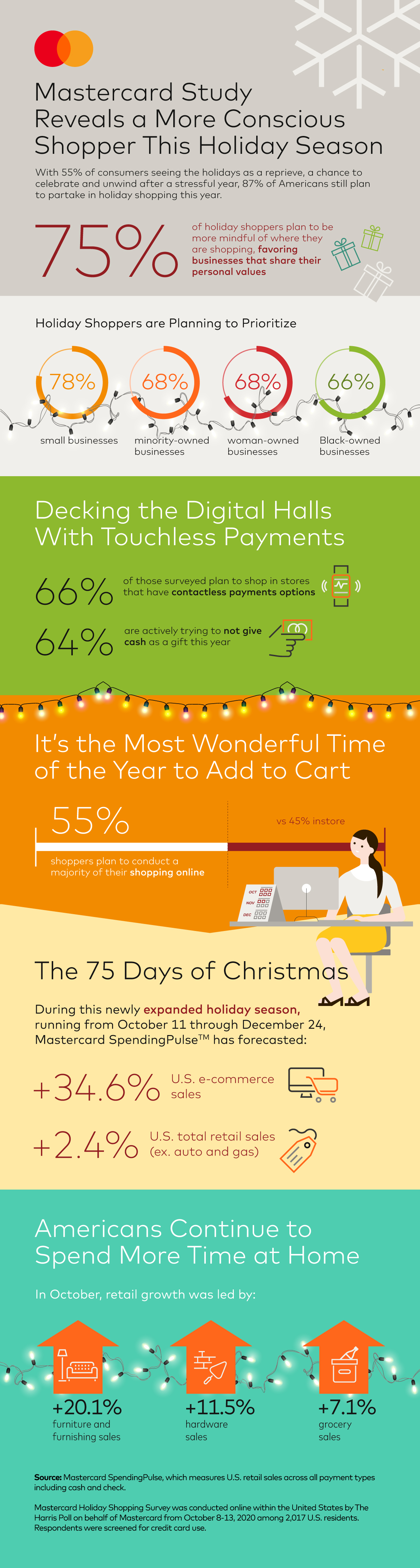Mastercard SpendingPulse™ reports on national retail sales across all payment types in select markets around the world. The findings are based on aggregate sales activity in the Mastercard payments network, coupled with survey-based estimates for certain other payment forms, such as cash and check. As such, SpendingPulse™ insights do not in any way contain, reflect or relate to actual Mastercard operational or financial performance, or specific payment-card-issuer data.