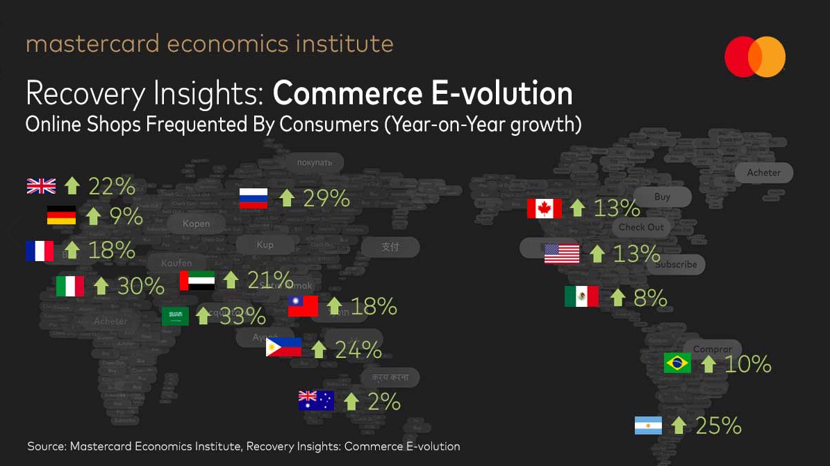 Se espera que entre el 20-30% de la preferencia por lo digital a causa del COVID a nivel mundial sea permanente, según el informe Recovery Insights de Mastercard: Commerce E-volution (La Evolución del Comercio Electrónico). Este informe se basa en la actividad de ventas anónima y agregada en la red de Mastercard y en un análisis exclusivo del Mastercard Economics Institute. El análisis profundiza en lo que esto significa por país y por sector para bienes y servicios, dentro de los países y a través de las fronteras.