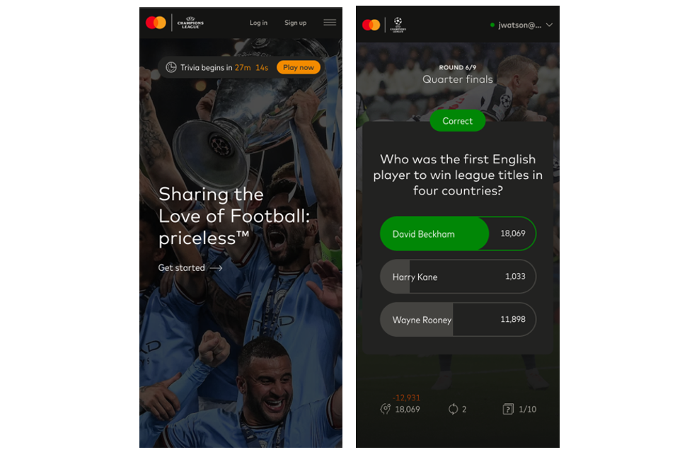 A lo largo del torneo de la UEFA Champions League 2023/24, los titulares de tarjetas Mastercard de Francia, España, Alemania, Reino Unido, Italia, Estados Unidos, México, Colombia, Brasil y Argentina podrán competir en un concurso en tiempo real centrado en el fútbol, respondiendo a preguntas desde el partido más goleador hasta el año en que se celebró la primera fase de grupos de la historia.