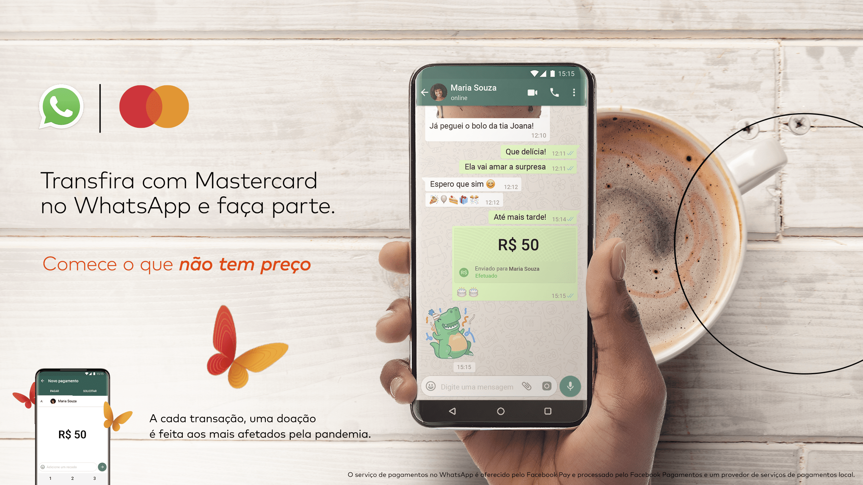 A partir de hoje, clientes Mastercard no Brasil podem enviar e receber dinheiro para amigos e familiares pelo WhatsApp. Os portadores de cartões de débito Mastercard com cartões emitidos pelo Banco Inter, Itaú, Nubank e Sicredi poderão utilizar o inovador serviço de transferências em tempo real pelo WhatsApp. A solução é habilitada pelo Facebook Pay e processada por Facebook Pagamentos e Cielo.