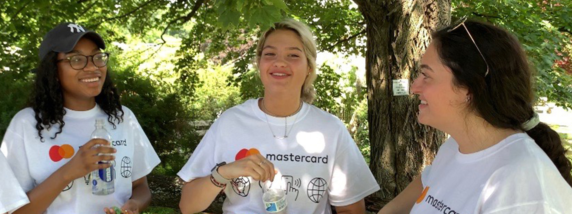Photo at top: Elaina Conway, center, interned last summer at Mastercard’s Purchase headquarters with her twin sister Emily, right, and Efe Alonge, left.