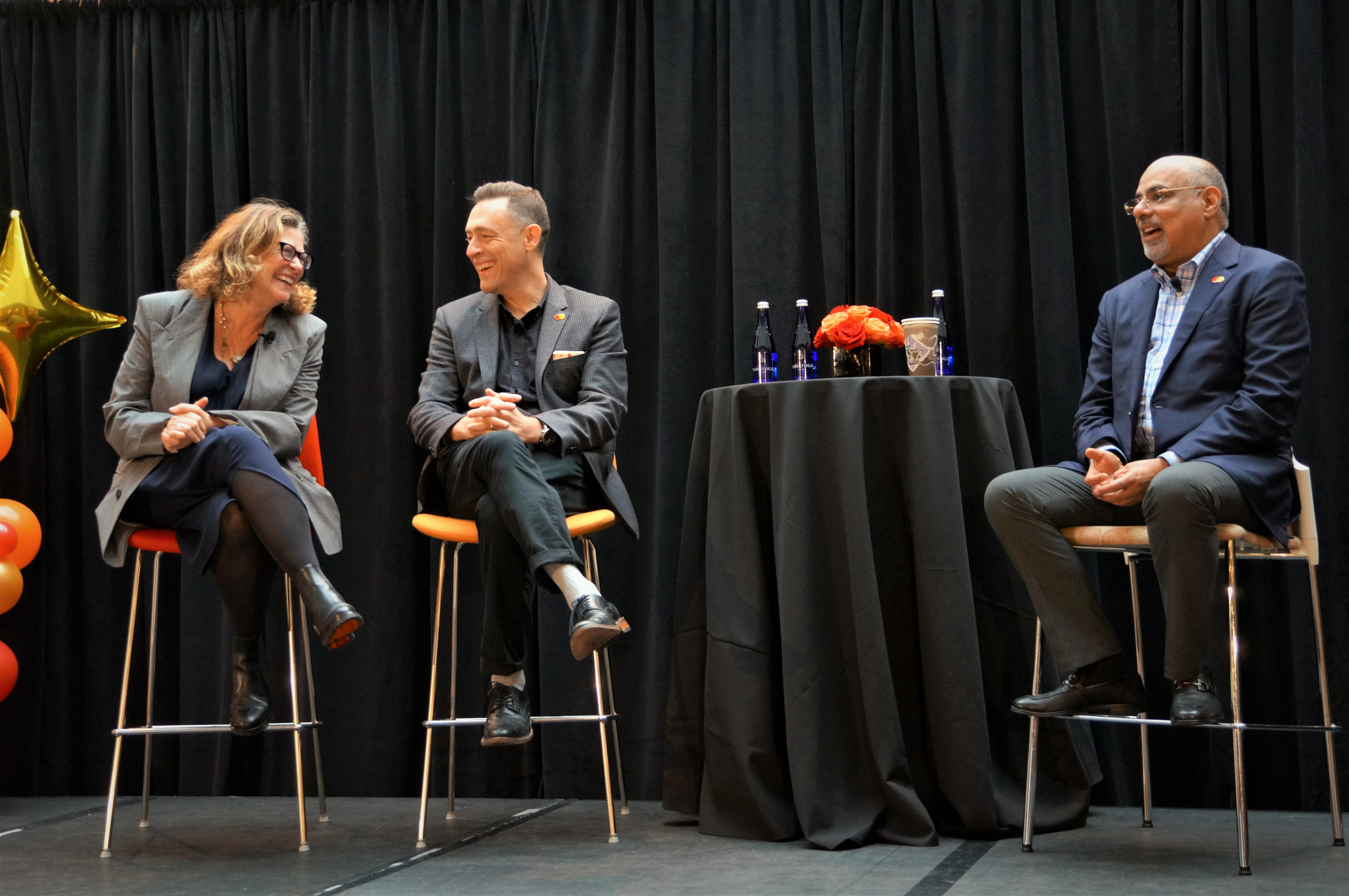 From left, Joyce King Thomas, Pierre Lipton and Raja Rajamannar at a Priceless 25 panel at Mastercard's Purchase headquarters. (Photo credit: Anthony Venutolo)