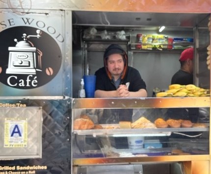 At the crack of dawn, Miguel parks his coffee cart, Rose Wood Cafe, at his usual spot outside a skyscraper that houses Major League Baseball headquarters, a global insurance company and a high-profile law firm. There, he joins a long line of other food carts that have convened at this corner for decades selling breakfast rolls, smoothies and halal food to the office dwellers above.
