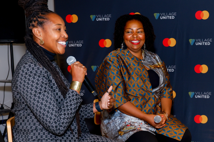 Our Village United founder Lakeysha "Dr. Key" Hallmon, left, and Salah Goss, senior vice president for the Mastercard Center for Inclusive Growth, at the small business event at Mastercard's New York City Tech Hub. (Photo credit: Carol Rose)