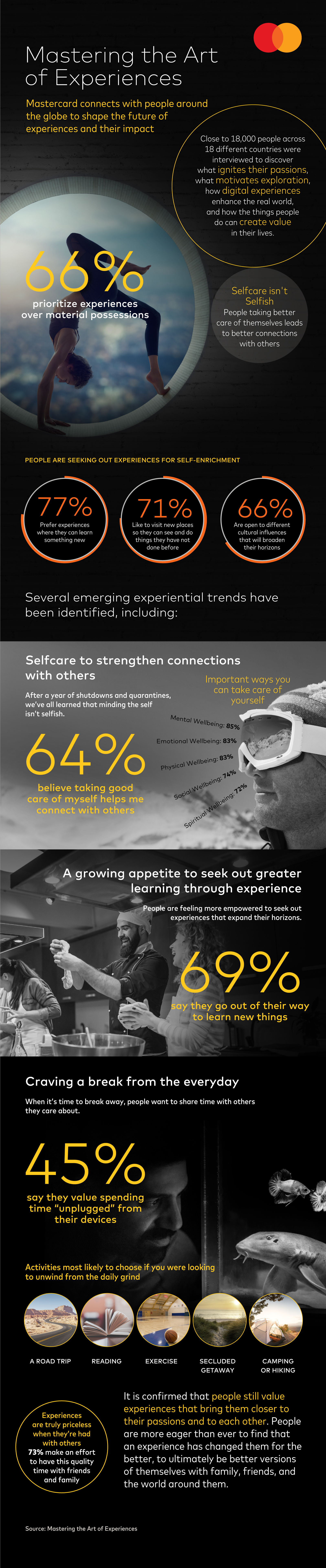 People Globally Want to Expand their Minds, Unwind from the Daily Grind and Seek Selfless Self-Care, According to New Mastercard Experience Research