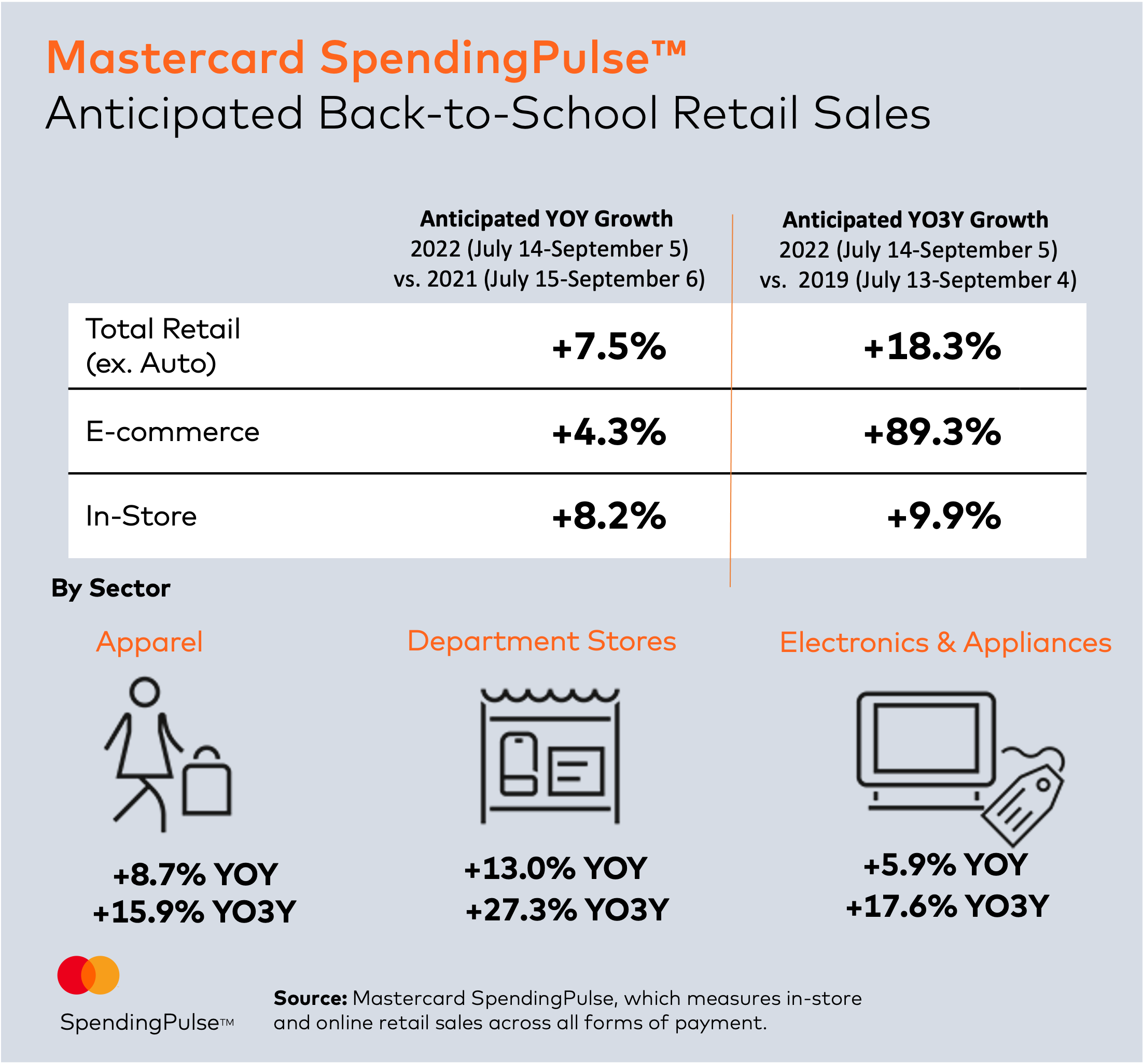 - The In-Store Experience: Shopping for back-to-school becomes an experience of its own. From needing to try on new sizes to wanting to browse the latest fashions in person, the return to stores is expected to grow 8.2% YOY / 9.9% YO3Y this season.