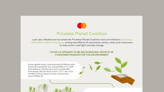 With growing consumer passion for the environment, Mastercard continues to develop products and programs that help them contribute to the future of the planet. In 2020, Mastercard created the Priceless Planet Coalition, which unites the efforts of merchants, banks, cities and consumers to restore 100 million trees and help tackle climate change.
