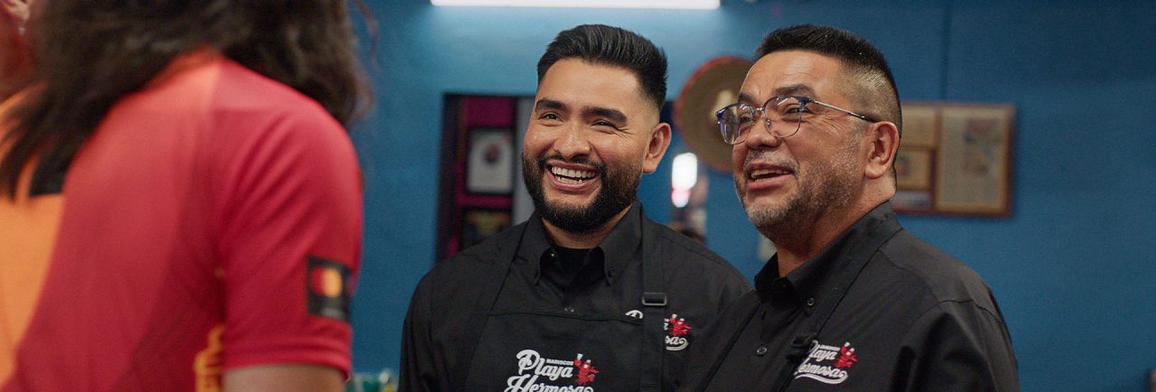 Y después de que el director gritara “¡Corten!”, volvieron al trabajo, preparando platillos como camarones marinados en jugo de limón, pulpo a la parrilla y aguachile de mango y habanero para los agradecidos clientes de su cantina de mariscos mexicana Mariscos Playa Hermosa.