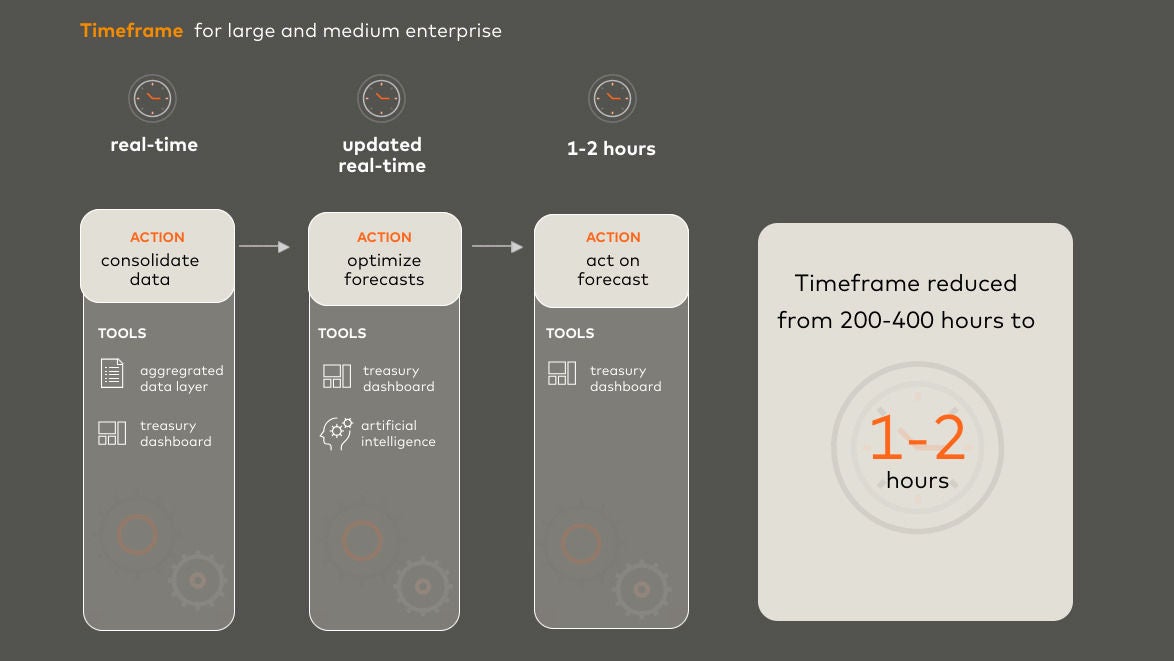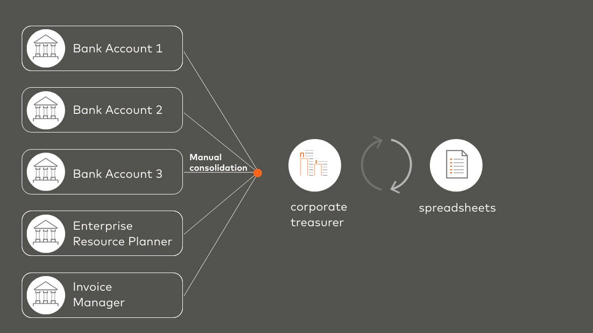 Ovo zahteva od korporativnih blagajnika da koriste „analitiku okretnih stolica“ - skačući između alata kako bi dobili sliku o svom gotovinskom položaju. Informacije mogu biti zastarele pre nego što budu prijavljene.