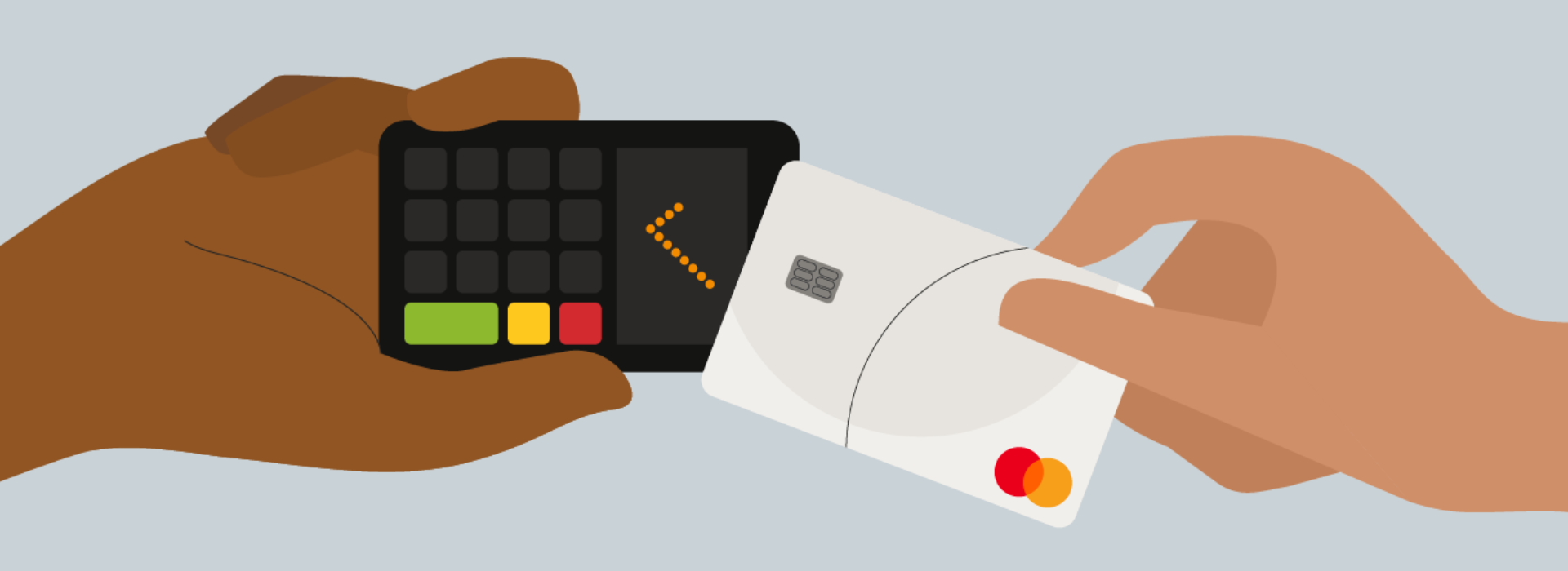 Beskontaktno plaćanje su jednostavni, brzi, sigurni i bez dodira načini plaćanja lično pomoću platne kartice, mobilnog novčanika ili nosivog uređaja sa omogućenim plaćanjem, kao što je pametni sat ili fitnes tracker. Pomoću dodira i kretanja jednostavno dodirnete ili držite karticu ili uređaj na čitaču plaćanja trgovca da biste dovršili transakciju.