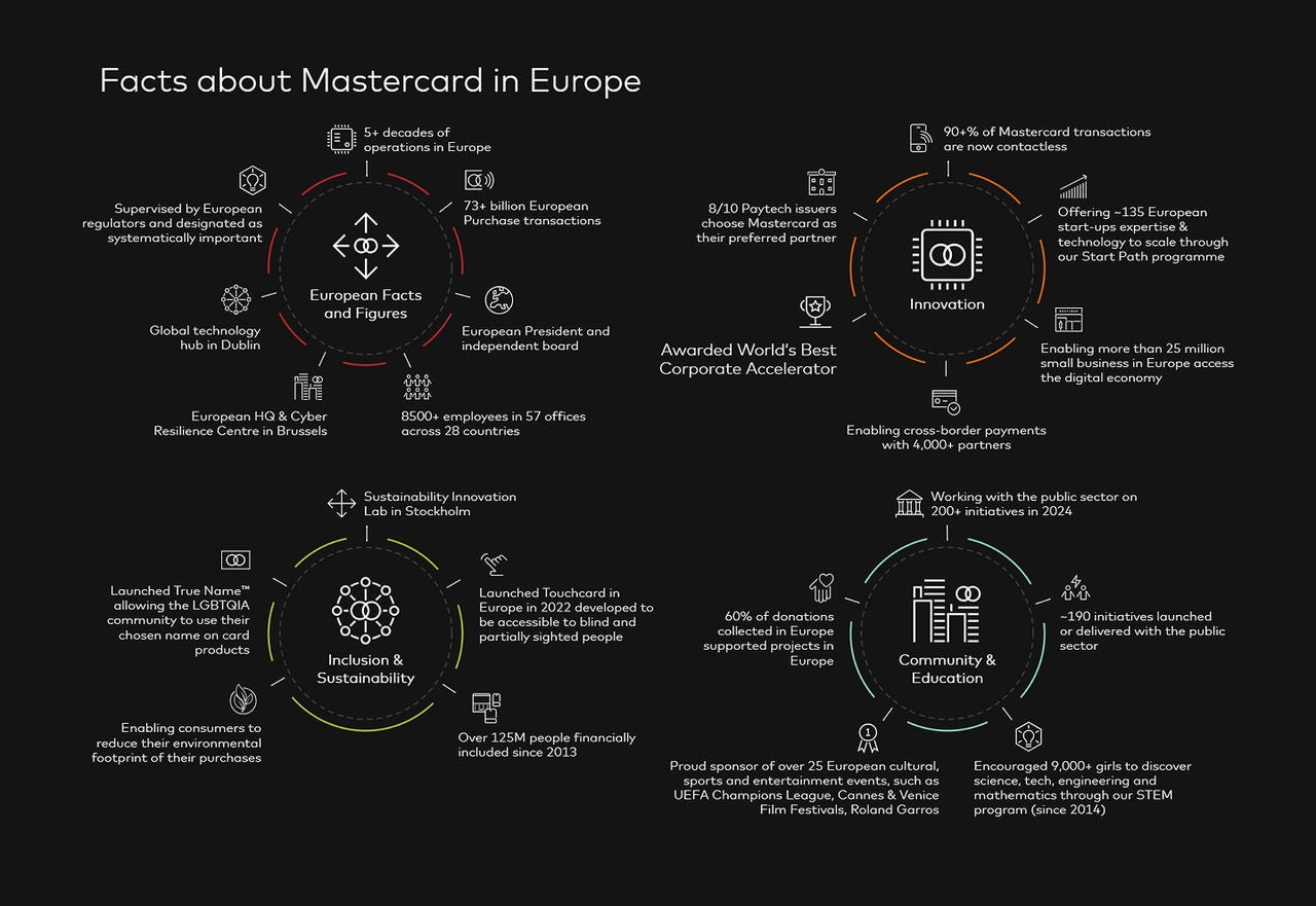 Our core values govern everything we do for our cardholders and partners. Europe is where we are able to deliver innovation at scale, fastest. Mastercard technology creates confidence in payments so Europe can thrive.