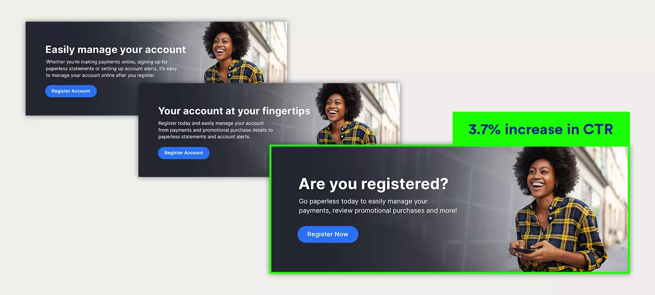 Synchrony personalizes with LiveRamp data to create relevant experiences based on the type of credit card a site visitor has – another strong example of how to encourage key customer behavior based on available information during the adoption phase.