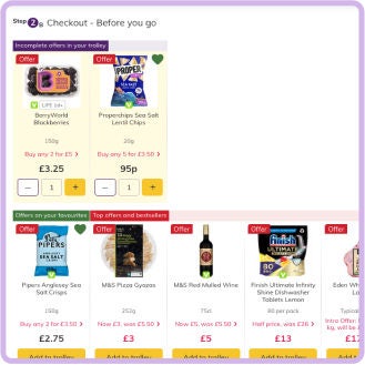 Here, Ocado’s flash sales on select products appeared in one convenient page right before the shopper proceeded to check out. This experience appeared only to returning visitors.
